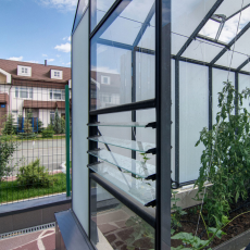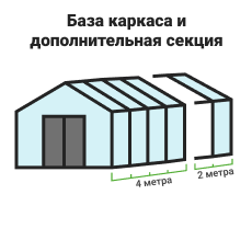 В базовую комплектацию входят: каркас теплицы, дверь-купе, две форточки в крыше, комплект крепежа для сборки.
