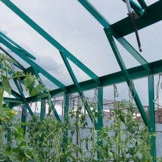 Каркас изготовлен из оцинкованной стали, произведённой методом холодной прокатки. Защитный цинковый слой предотвращает образование коррозии и позволяет эксплуатировать теплицу как без дополнительной обработки, так и с полимерно-поршковой окраской по каталогу-RAL.