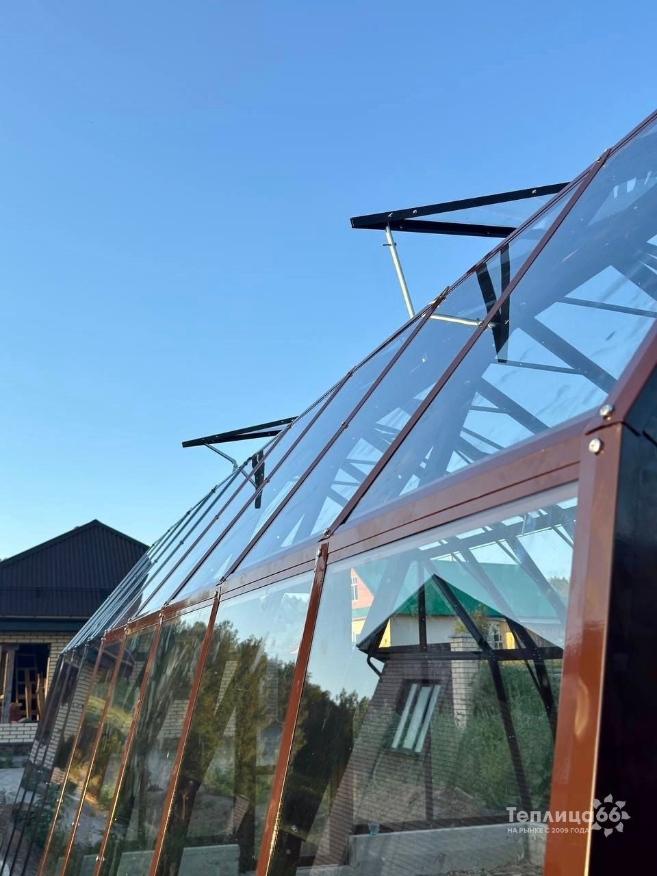 Модель входит в линейку теплиц нашего производства шириной от 2,6 до 5,0 метров. В конструкции используется 533 уникальные детали, что формирует не только аккуратную стеклянную геометрию, но и надёжность на десятилетия.